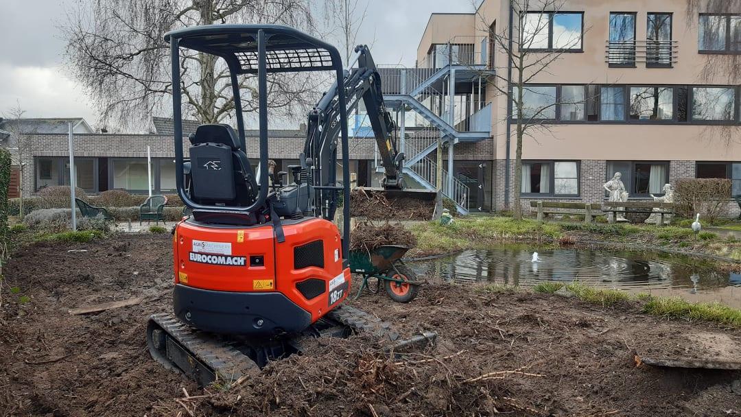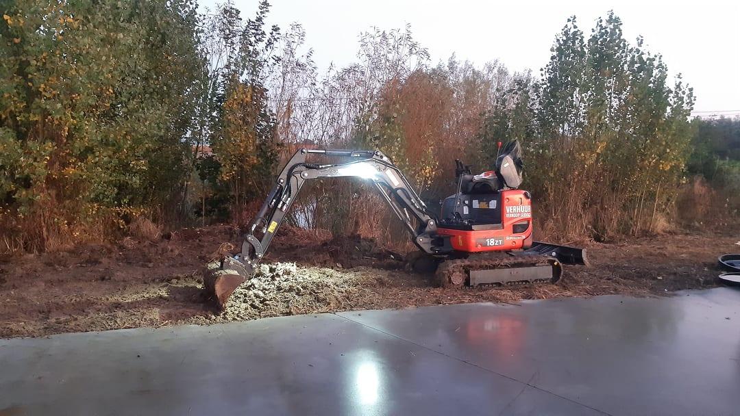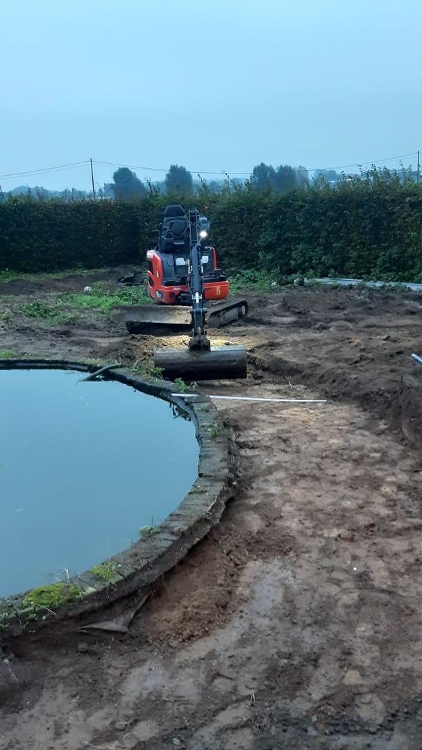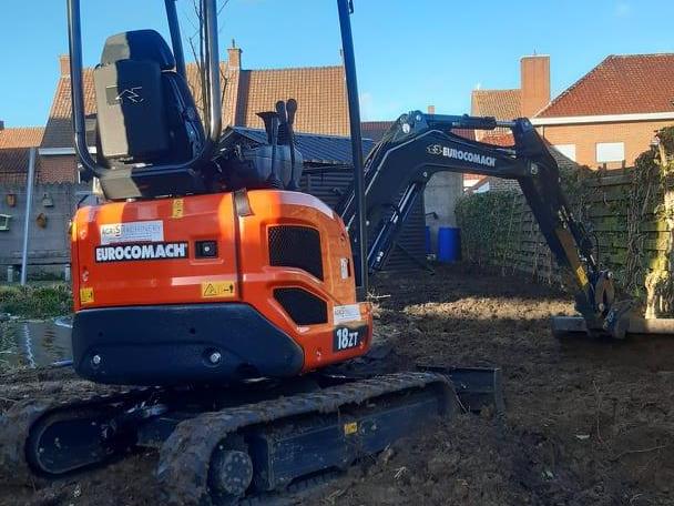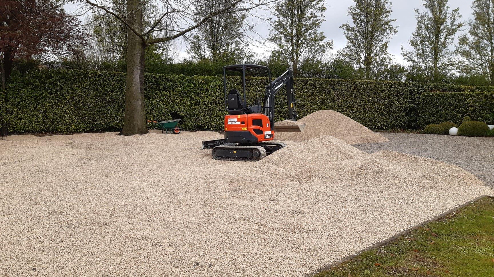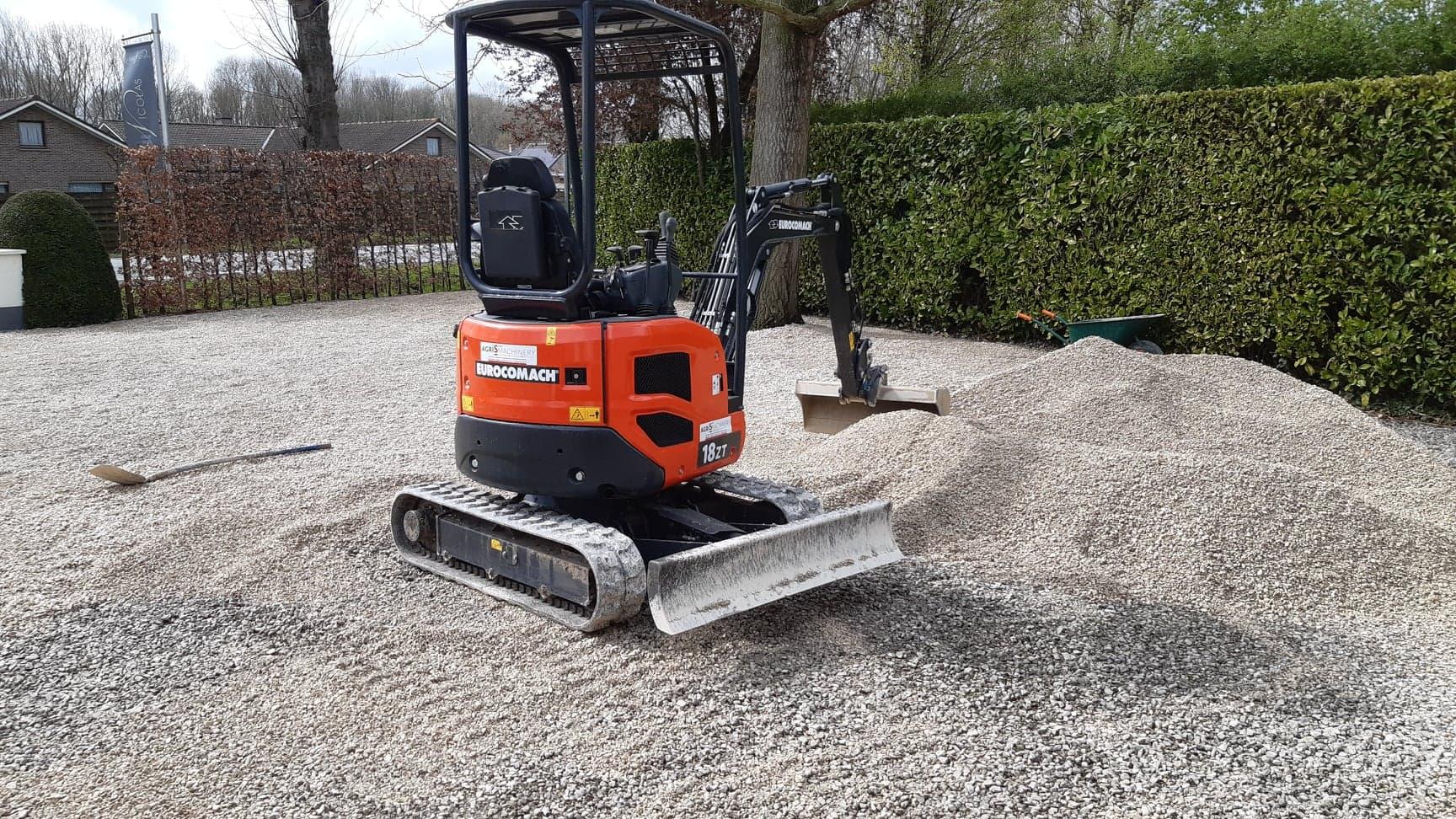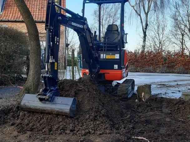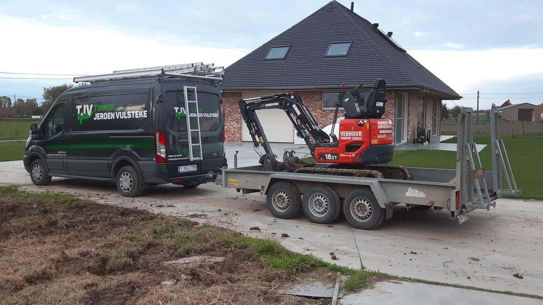 Met onze mini-kraan kunnen wij op praktisch iedere plaats komen. Als wij een doorgang van 120cm hebben dan kan deze veelzijdige helper erbij. In combinatie met een mini dumper kunnen wij heel wat grond verzetten. Met verschillende opzetstukken is iedere klus mogelijk. We graven tuinpaden, diepen uw vijver, ... en door het geringe gewicht van deze kraan brengen wij ook nauwelijks schade aan tuinpaden.
